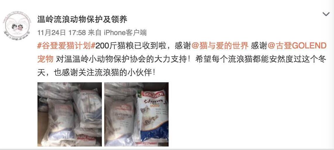 于是,在11月初,谷登和猫与爱的世界联合开展了爱猫计划。