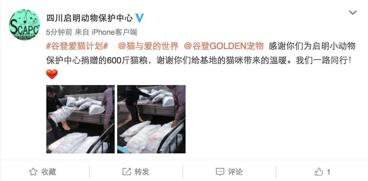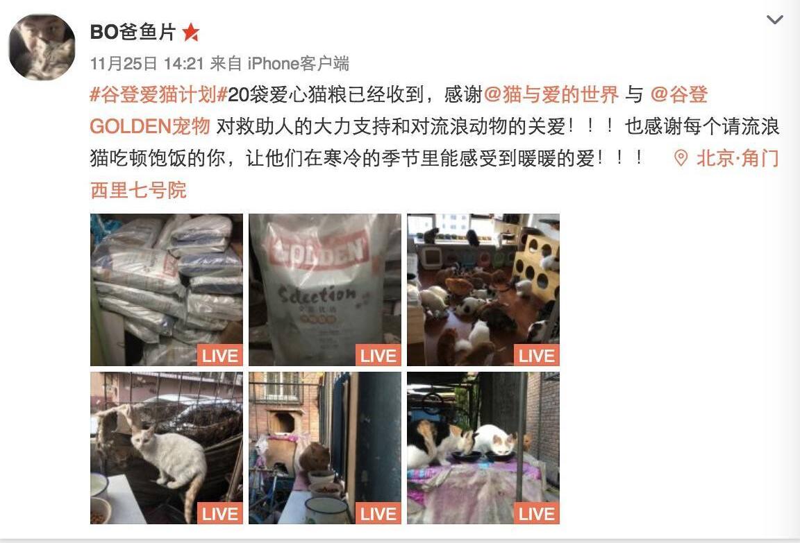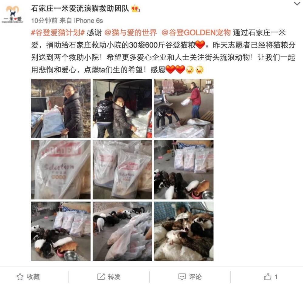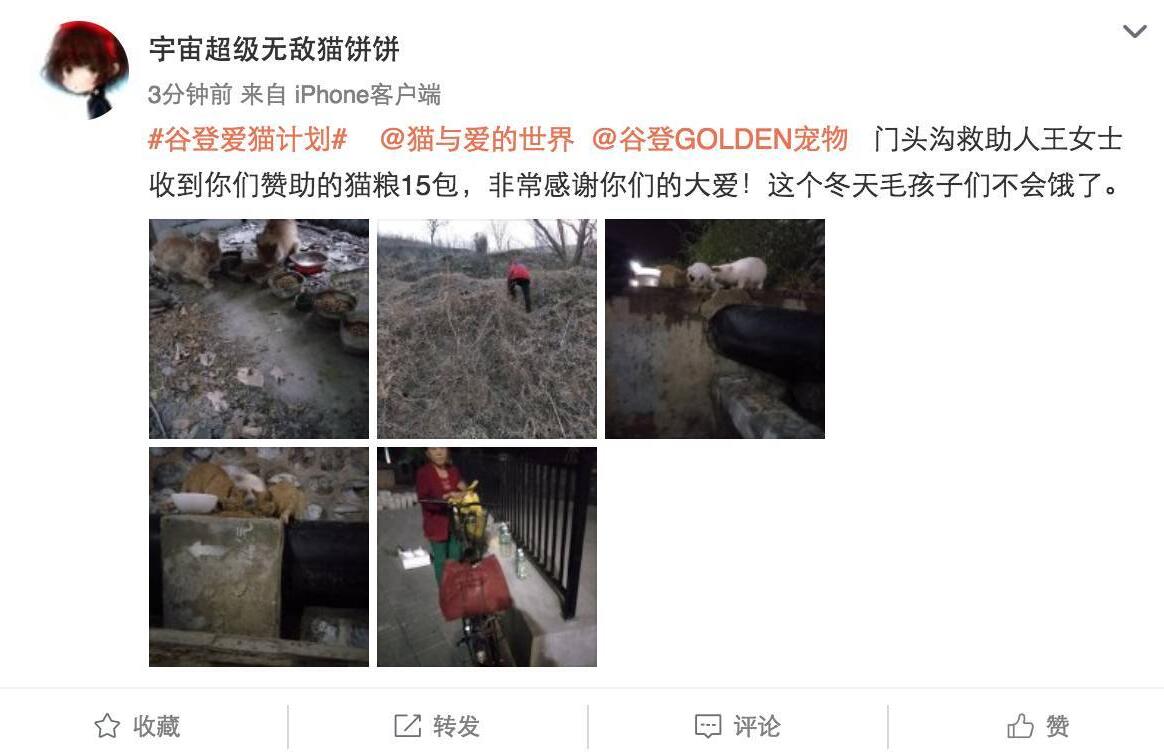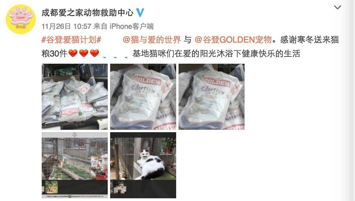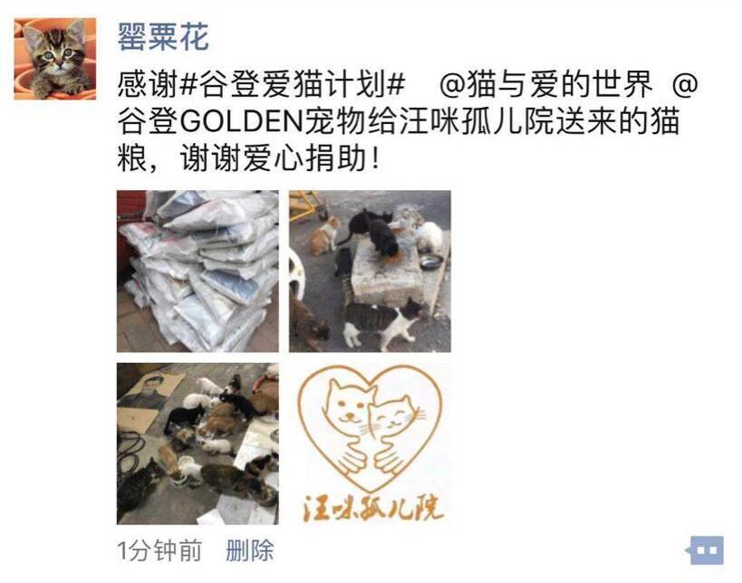 以上出现的微博均是对应救助站的官方微博,想了解更多、或者想自行捐助的小伙伴直接去各救助站的微博评论、私信即可。有的救助小院因为阿姨年纪大没有微信和微博,所以并没有展示出来,但是已经确认收到猫粮啦!同时因为了解到很多救助站救助的猫咪有伤病而且体制差,所以在后期赞助商谷登又追加了谷登羊奶粉、谷登营养膏、谷登能量胶以及谷登猫用六种菌。