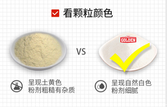2. 看产品颗粒的颜色;