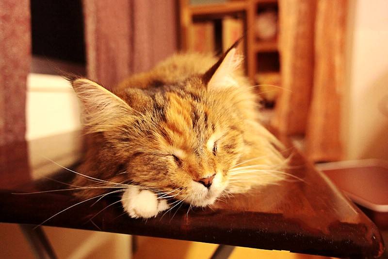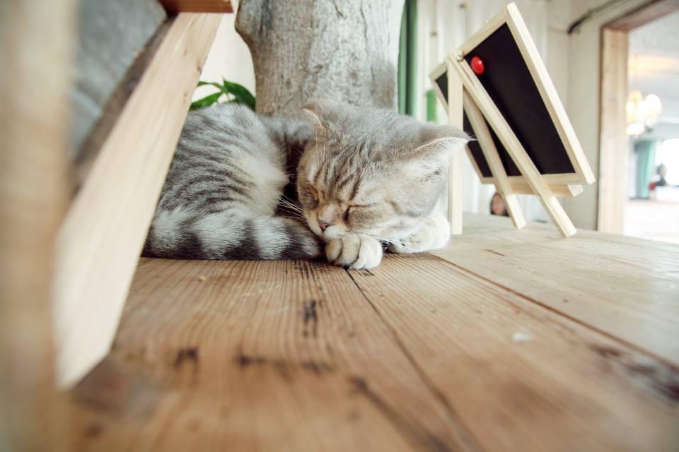 推开双层玻璃门走进宽敞明亮的客厅,可以看到随处都是跟猫有关的摆件,客厅中央很多形态各异的猫爬架,一只只毛茸茸的小家伙在咖啡厅的各个角落肆意玩耍,或是大摇大摆在客人腿上睡觉打呼。