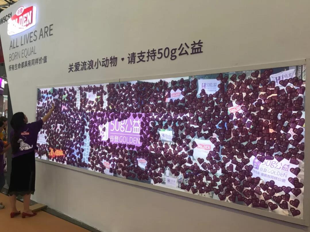 “50g公益”也来到了现场。现场宠物爱好者们纷纷驻足观看"50g公益”活动展示墙,了解并留言写下了对流浪动物、对“50g公益”的美好祝福。
