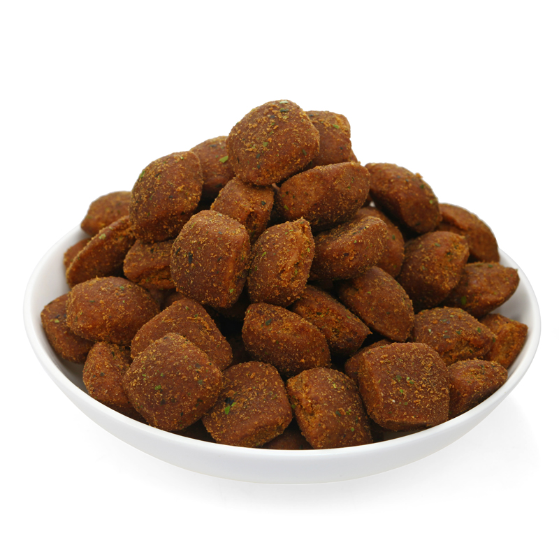原料组成:鸡肉粉、玉米、鸡油、大豆分离蛋白、啤酒酵母粉、石莼粉1%(海藻粉)。添加剂组成:卵磷脂(8%)、丙三醇、磷酸氢钙、氯化钠、氯化钾、氯化胆碱、硫酸锌、硫酸锰、硫酸铜、硫酸亚铁、抗氧化剂、亚硒酸钠。