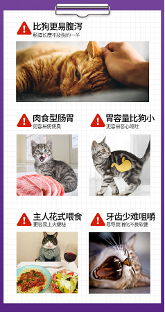 2. 其实相比狗狗更容易腹泻,因为肠道长度还不及狗狗的一半;