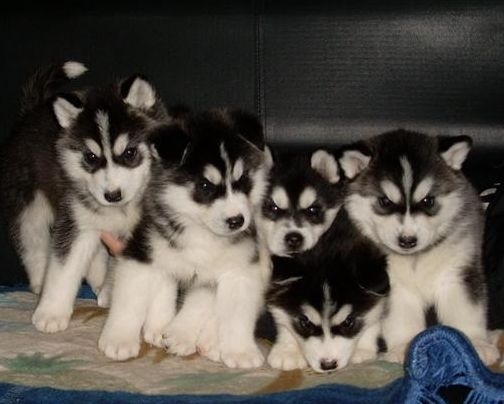 1.幼哈士奇在第一周从外表看没有什么区别,应该给他们系上不同颜色的带子,以便区别。从幼犬出世的第一天开始每天都要给他们称体重,刚出生的时候大概重450-550克,在前4周的时候,他们每天平均增加50克体重,4-8周时,每天几乎增加100克。